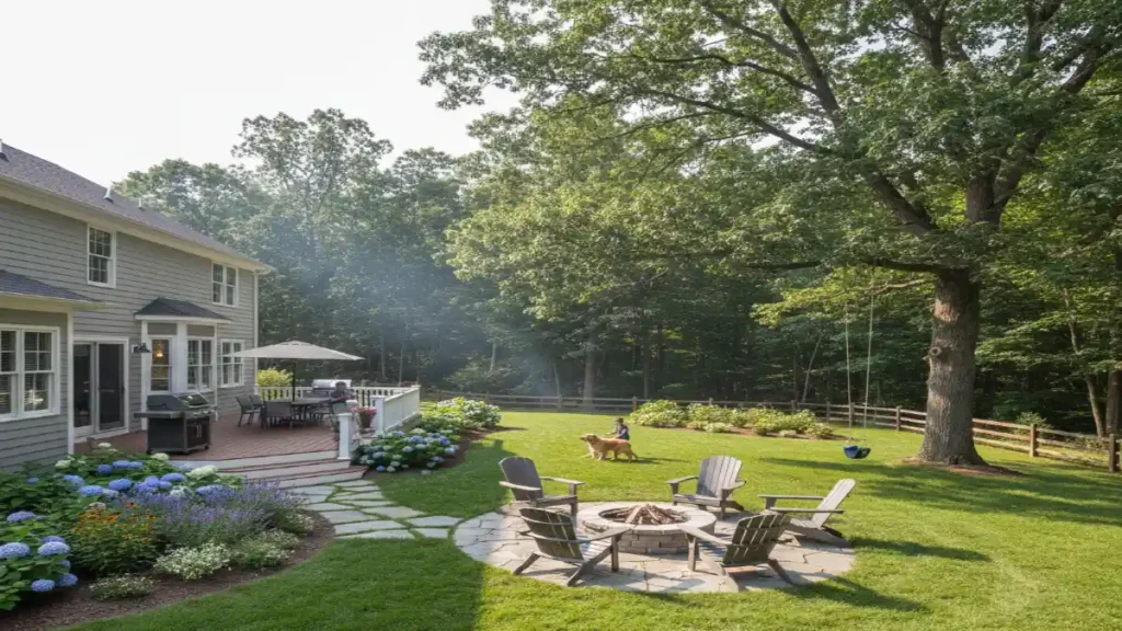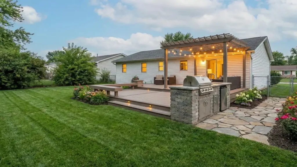 - Multi-Level Zoning: Instead of one big lawn, you now have a dedicated cooking deck and a separate relaxing fire pit area, essentially adding two “rooms” to the house.