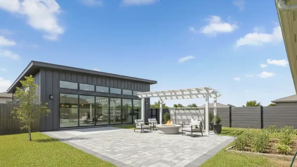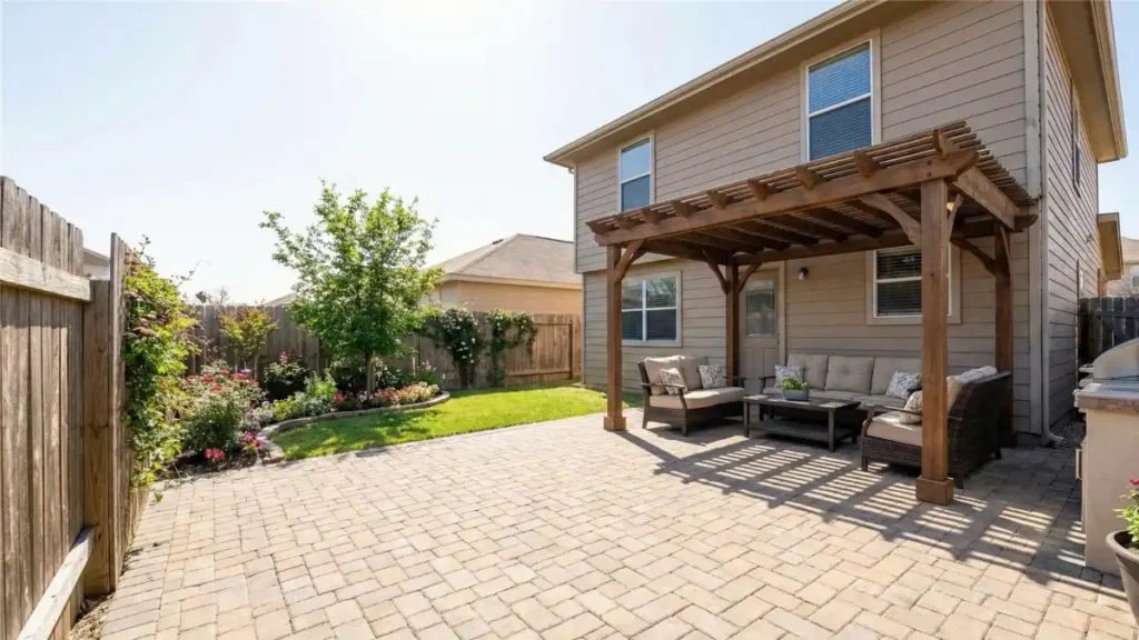 11. Minimalist Pergola & Paver Patio – Defining Modern Outdoor Living