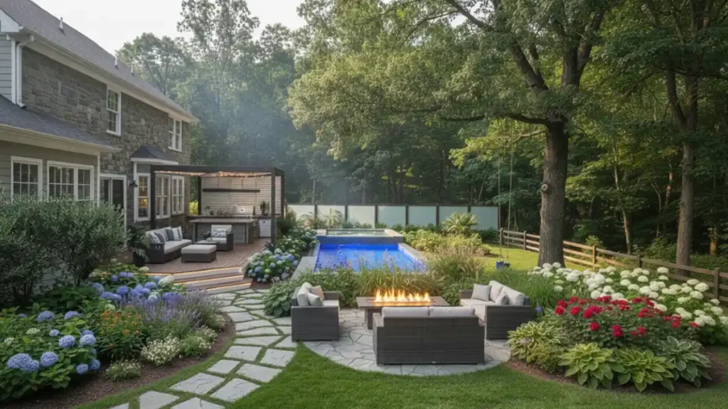 9. Stone & Splash Sanctuary – Elevating a Family Yard into a Resort Experience