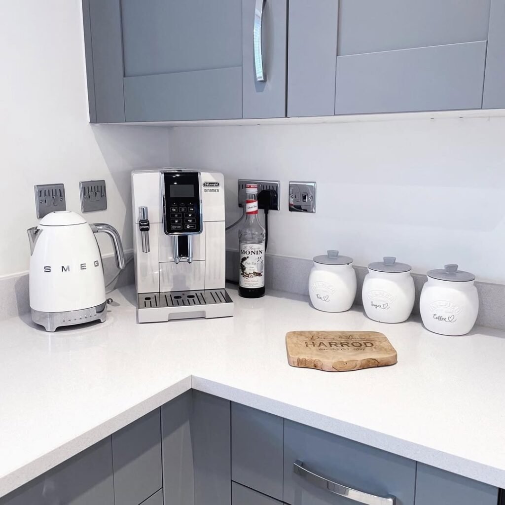 - Cohesive Appliances: Matching the finish of your high-use items, specifically the kettle and espresso machine, creates a unified look that significantly reduces visual clutter.