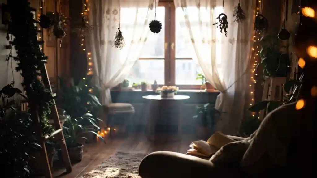 • Multi-Level Glow: Combining high-placed string lights with low-placed floor candles ensures the warmth fills the entire vertical space, eliminating cold shadows near the floorboards.