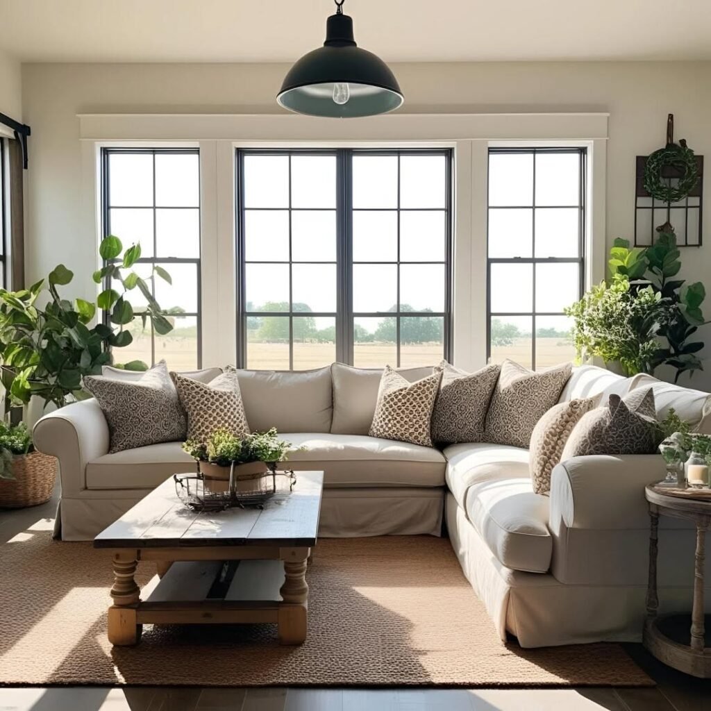 Natural light defines this space, proving that modern farmhouse design thrives on a seamless connection between indoors and outdoors.