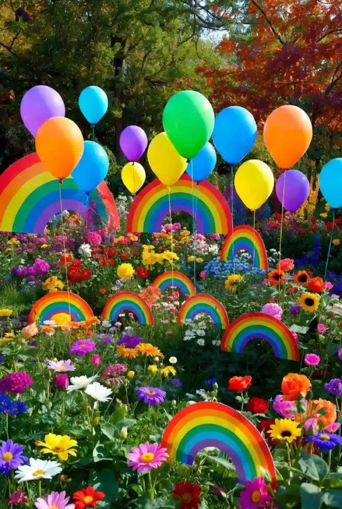 - Stake wooden or cardboard rainbow cutouts directly into the ground at varying depths to create a layered, “growing” effect among the real flowers.