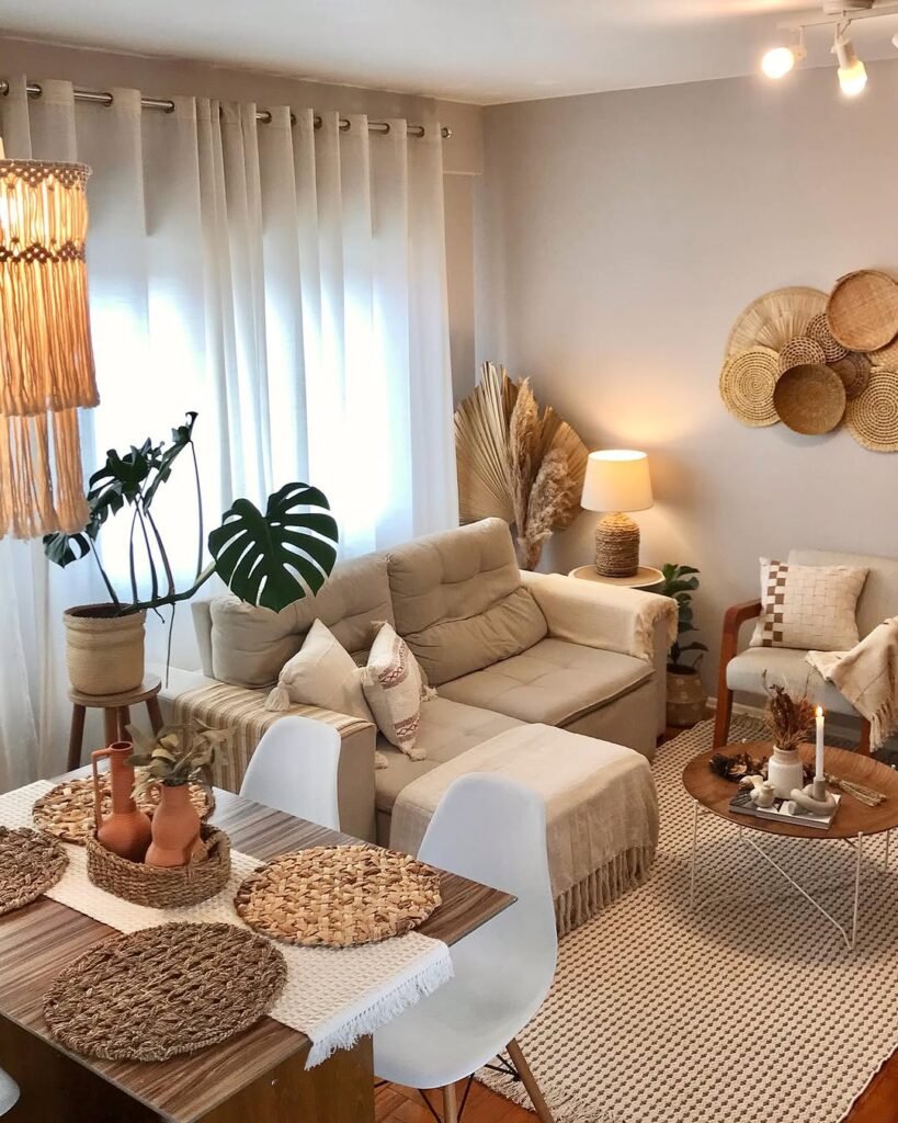 - Stick to a warm palette: Mixing too many colors on a small table creates visual noise. Using ceramics in shades of cream and clay ensures the table accessories blend seamlessly with the surrounding woven wall decor and wood tones.