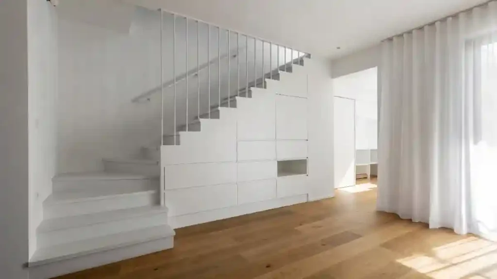 Modern living often demands clever solutions for tight corners. Installing low-profile cabinetry beneath an open staircase turns a wasted void into a functional focal point.