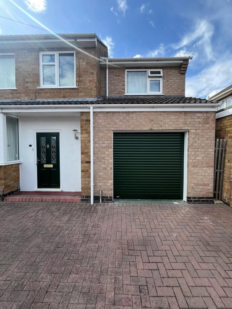 14. Forest Green Roller Shutter – Maximizing Driveway Space with Style