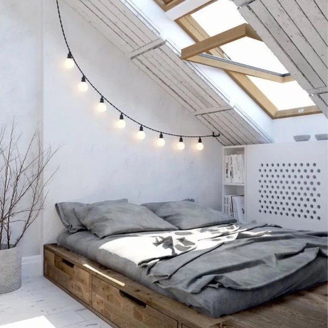 Low platform beds suit attic spaces with slanted ceilings perfectly. This choice prevents the room from feeling cramped while maintaining a modern aesthetic.