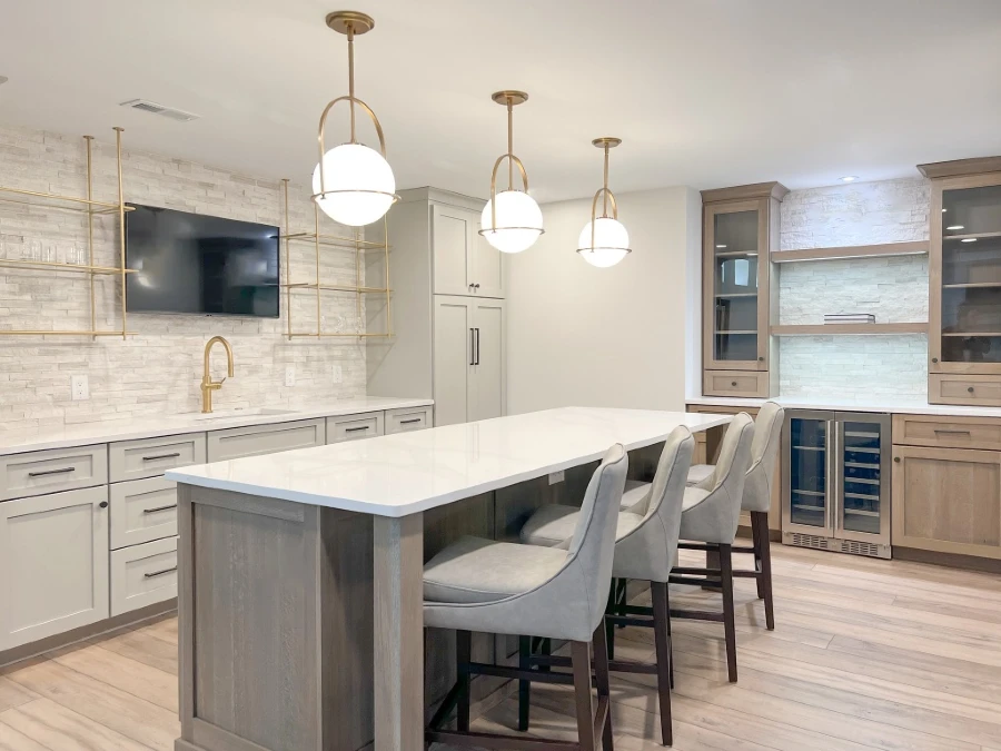 Incorporate a wet bar or cabinetry system to keep refreshments accessible and streamlined.