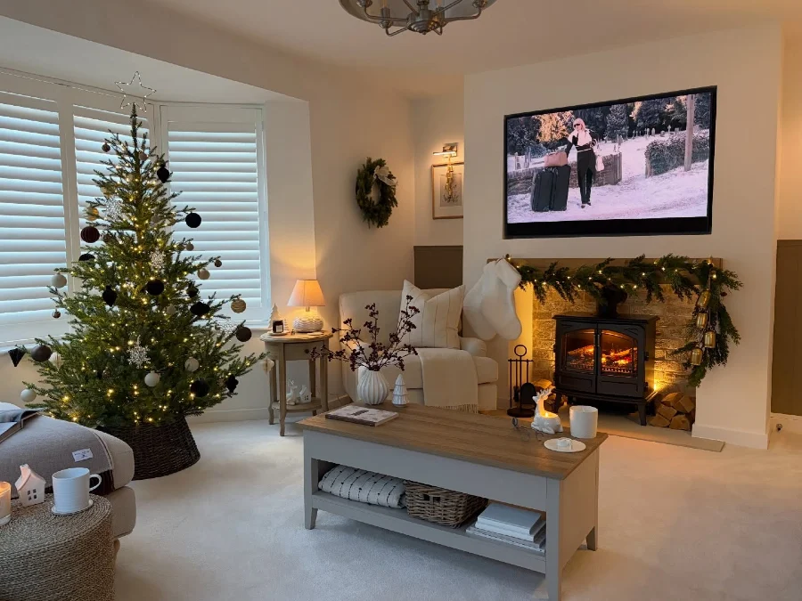 Glowing fairy lights on greenery add a magical touch. Stringing these across a mantel provides extra brightness at eye level.