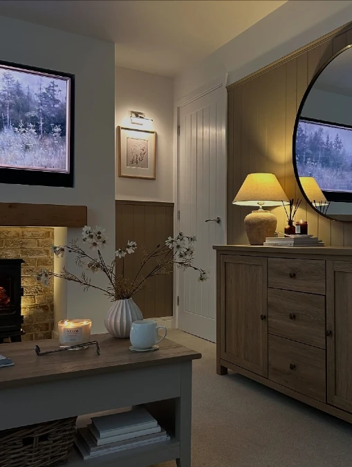 Small lamps create a soft glow in dark corners. This strategy eliminates harsh shadows that make a room feel cold.