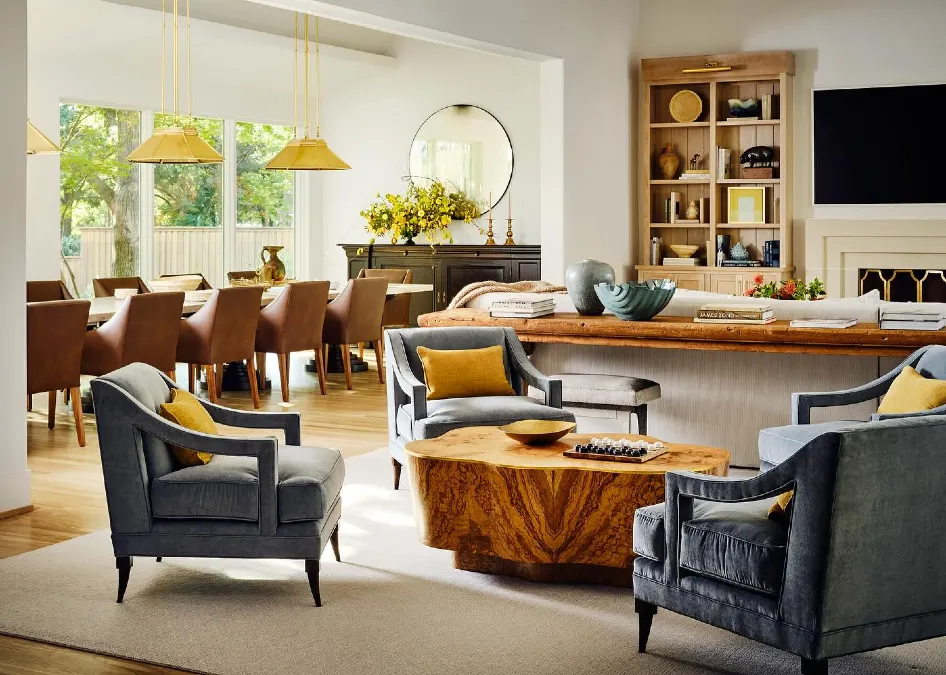 - Layer Your Lighting: Install distinct light fixtures, like a statement pendant over the dining table and warm floor lamps near the sofa, to signal a change in the room’s mood and purpose.