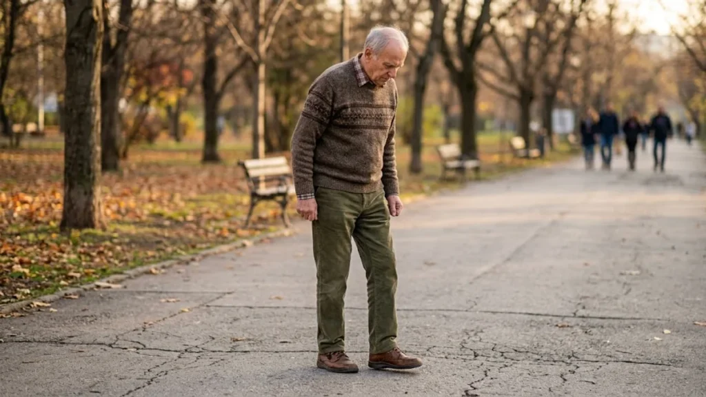 This shuffling gait stiffens your hips and ankles. A forward leaning posture visibly shifts your center of gravity. This directly increases your risk of falls.